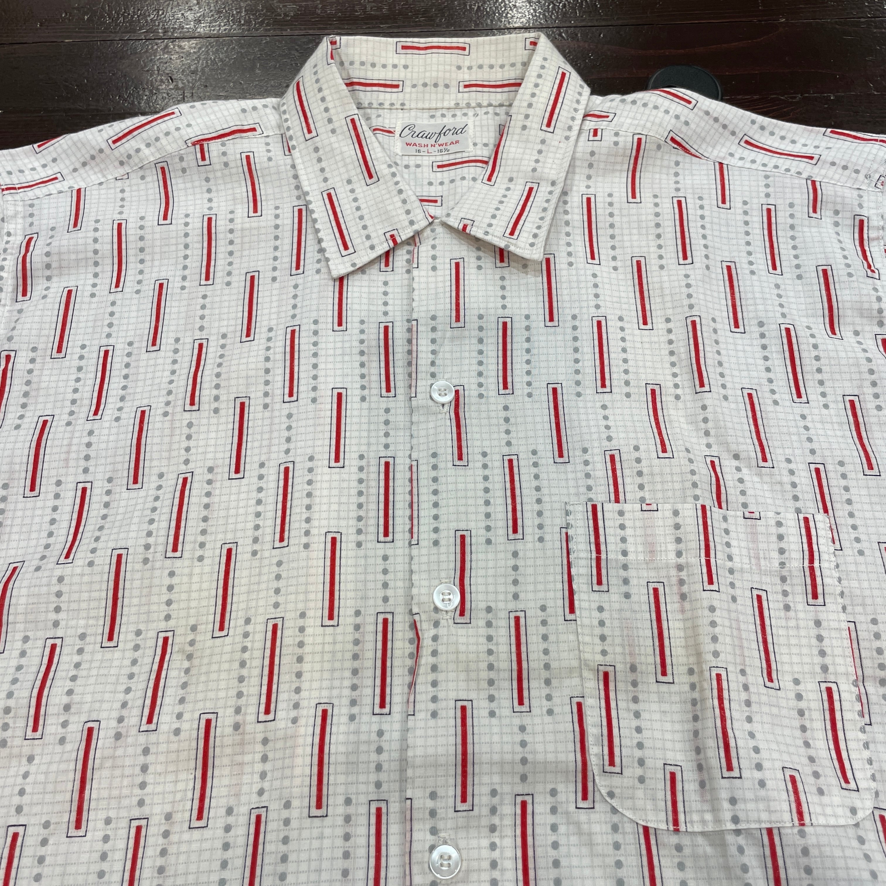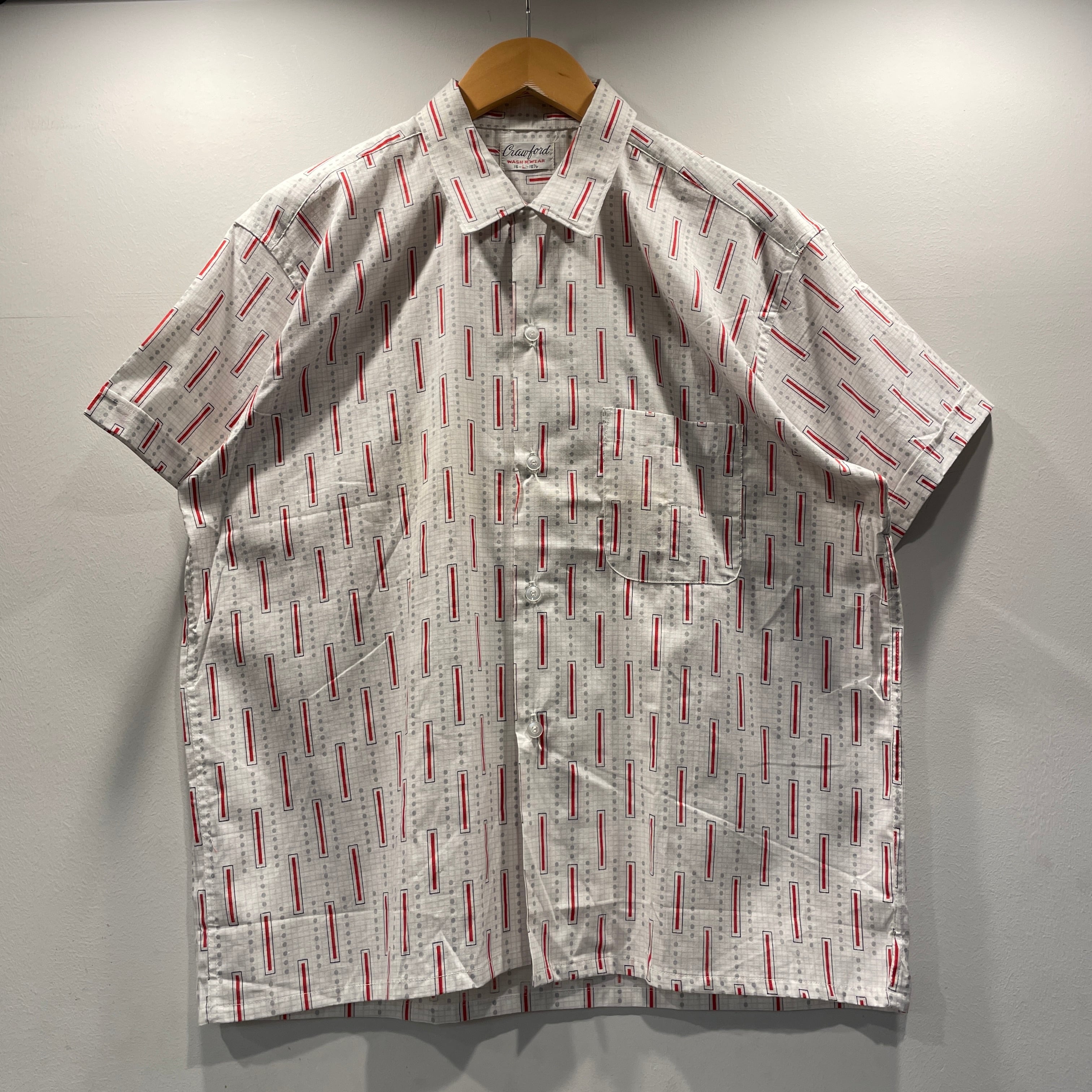 1960'S CRAWFORD S/S 総柄 COTTON SHIRT WHITE