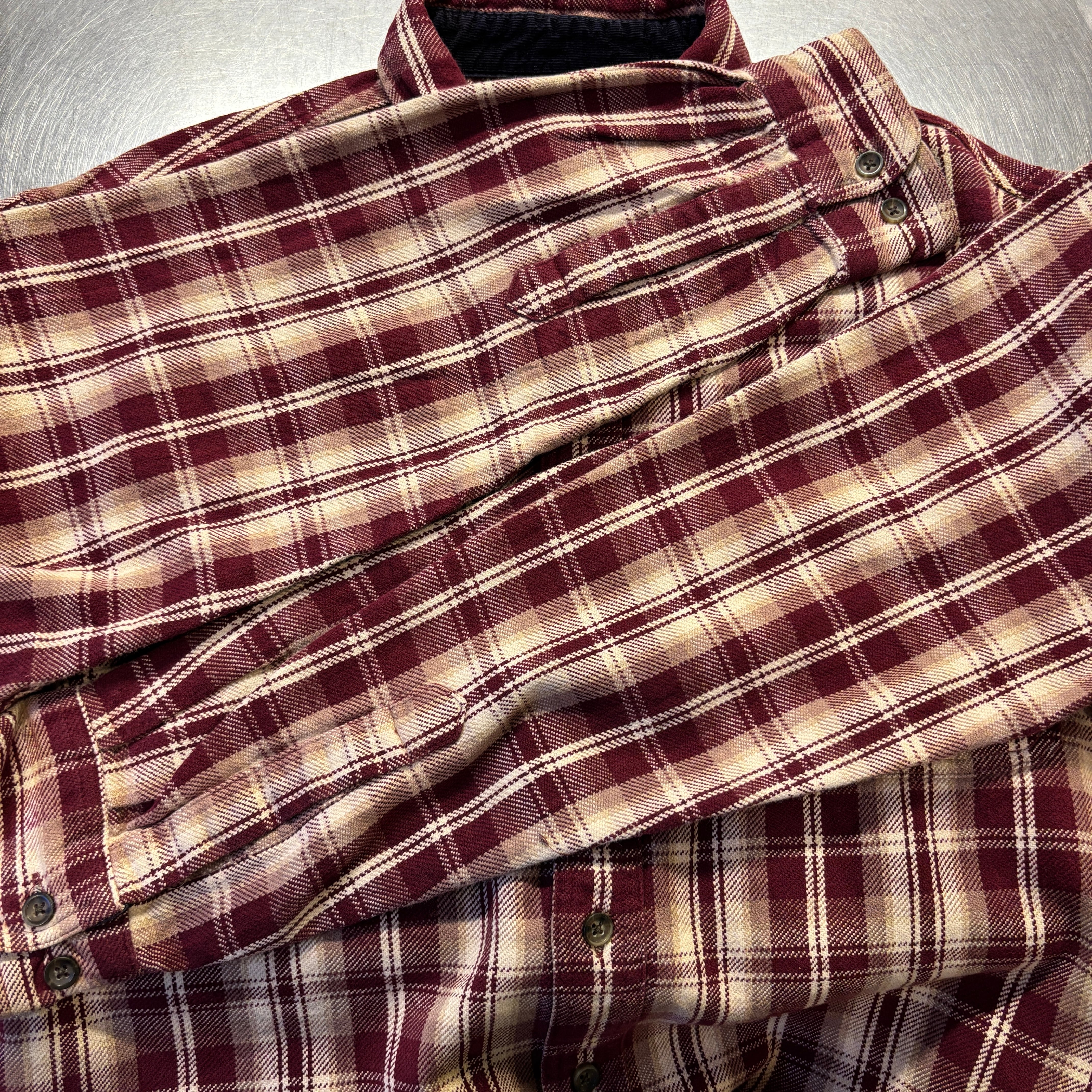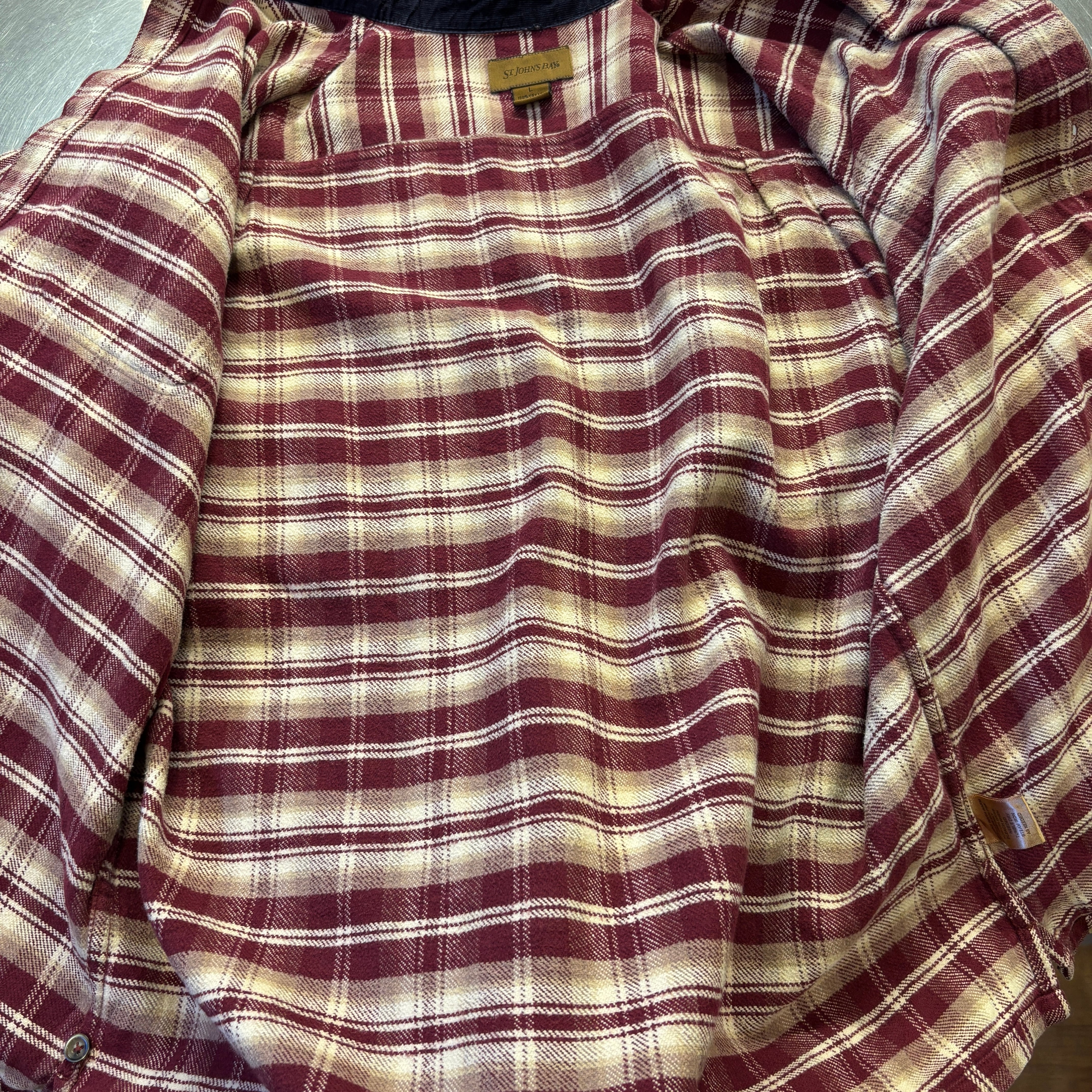 1990s~ ST.JHON'S BAY FLANNEL CHECK SHIRT BURGUNDY