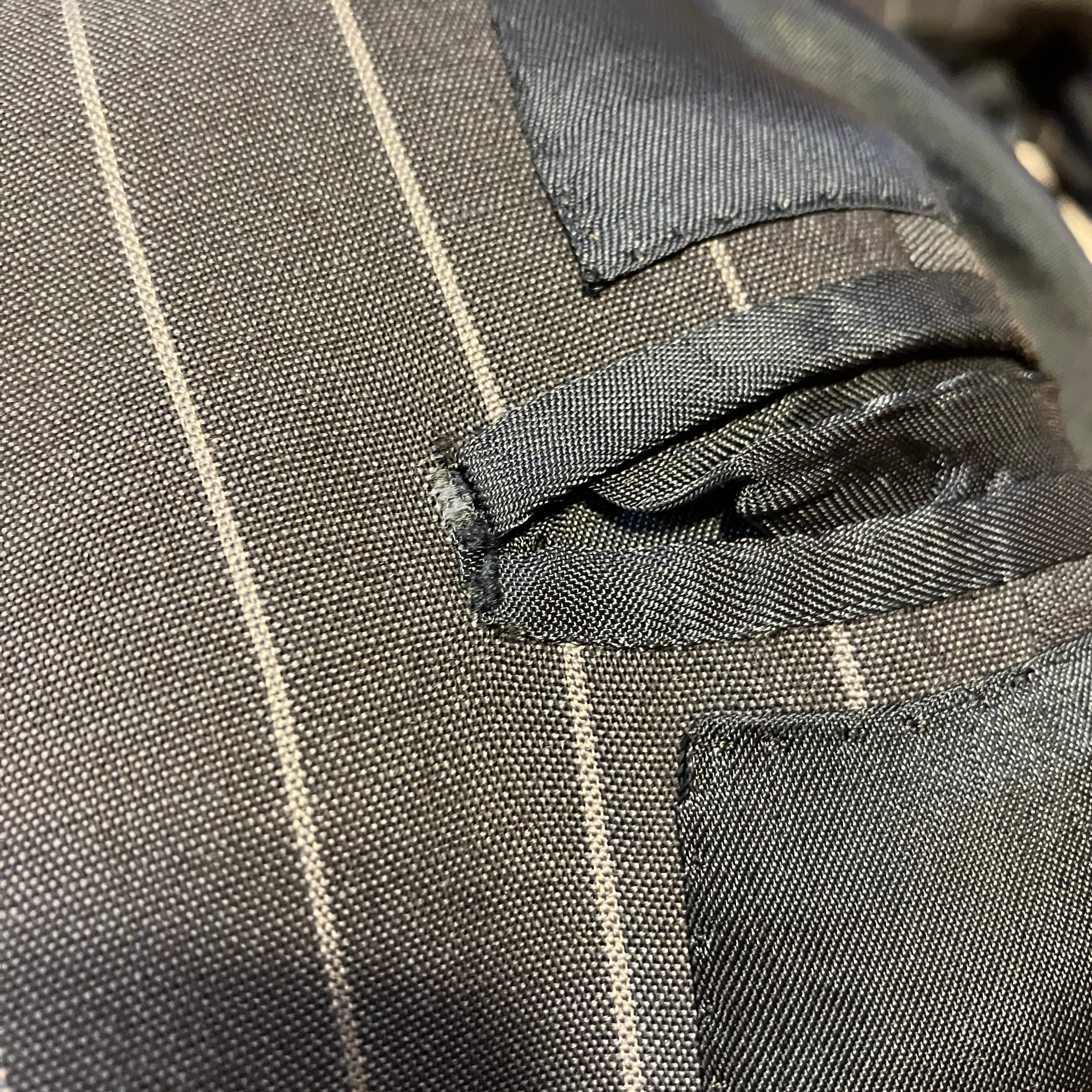 パンツ股下部分に、ステッチのほつれや小傷が見られますが、着用には問題ありません。