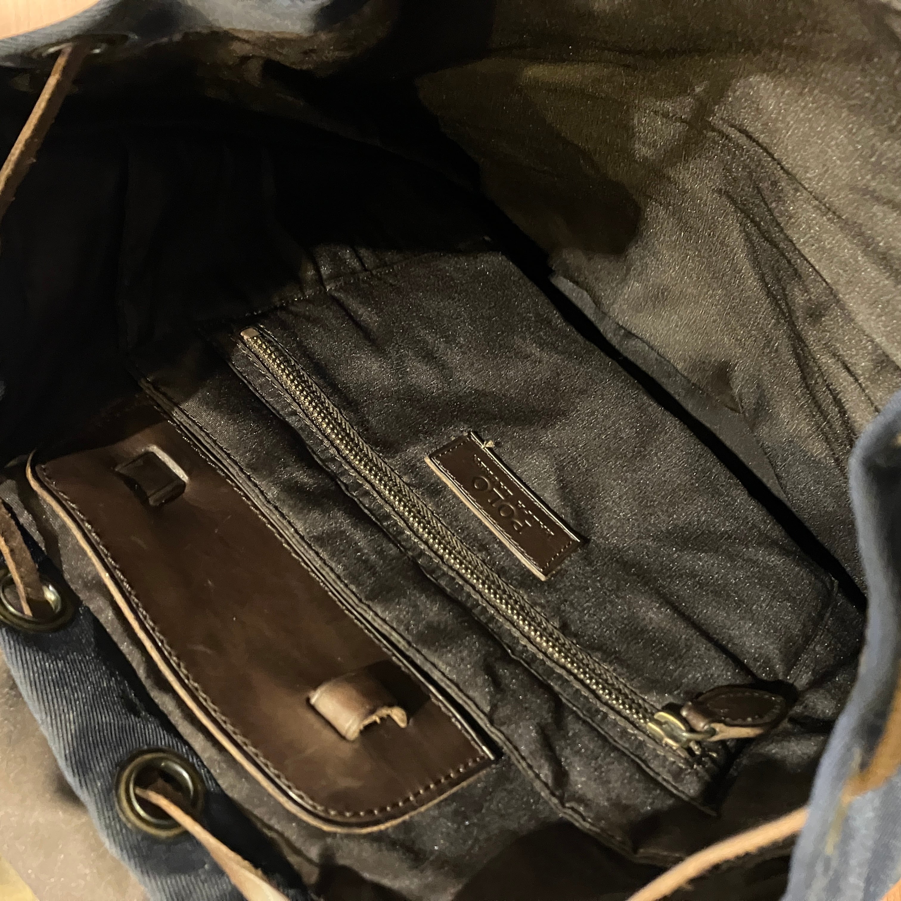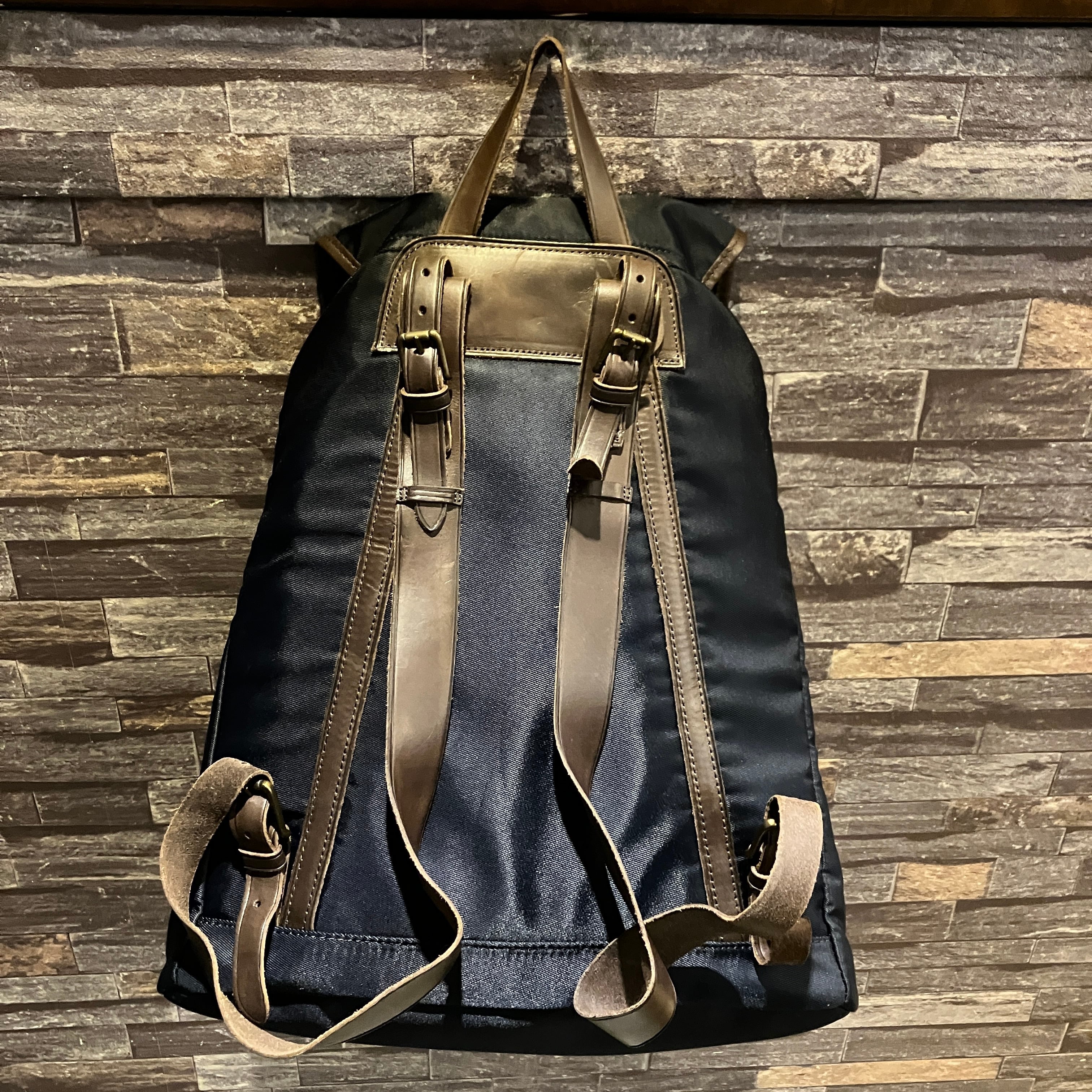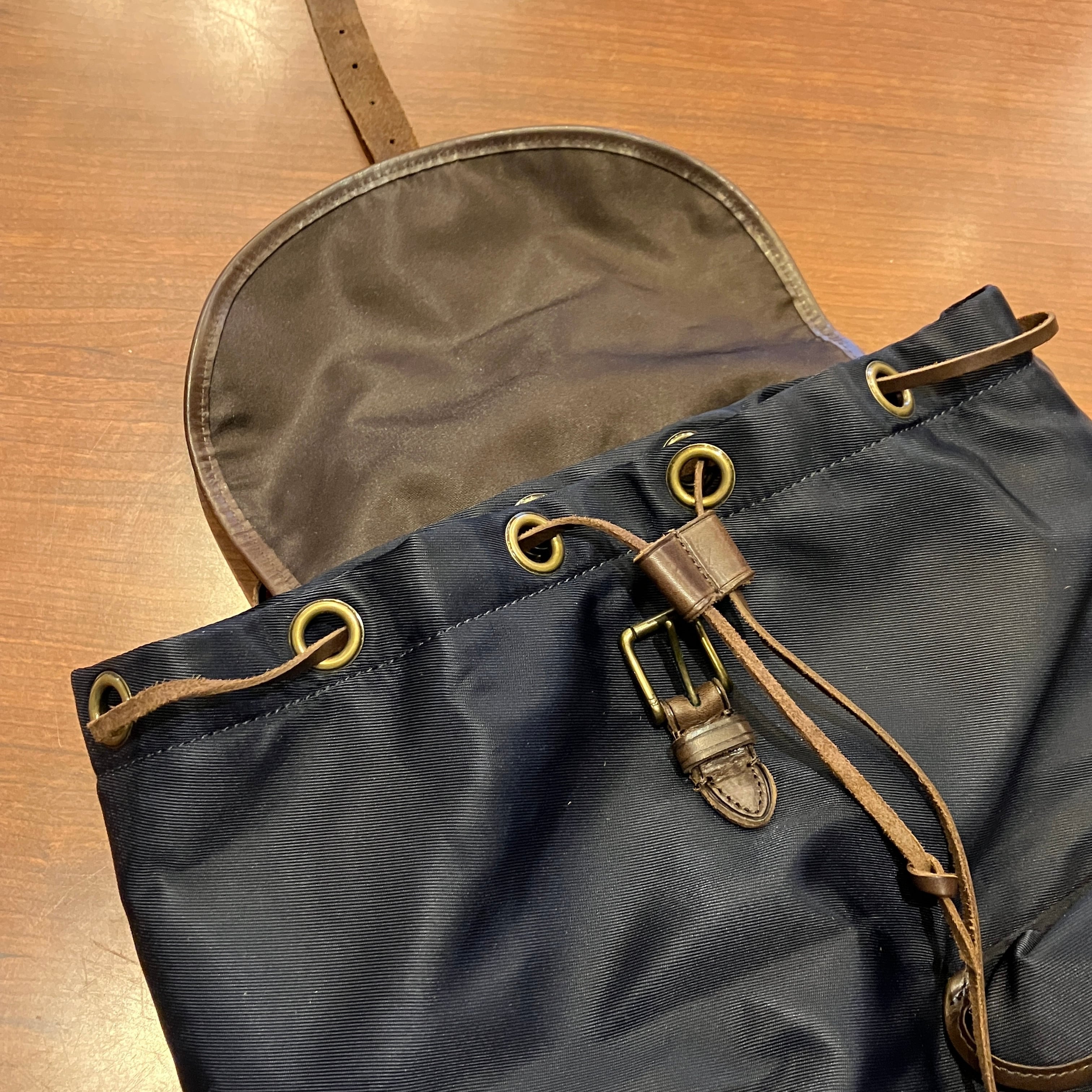 RALPH LAUREN NYLON/LEATHER DAY PACK NAVY