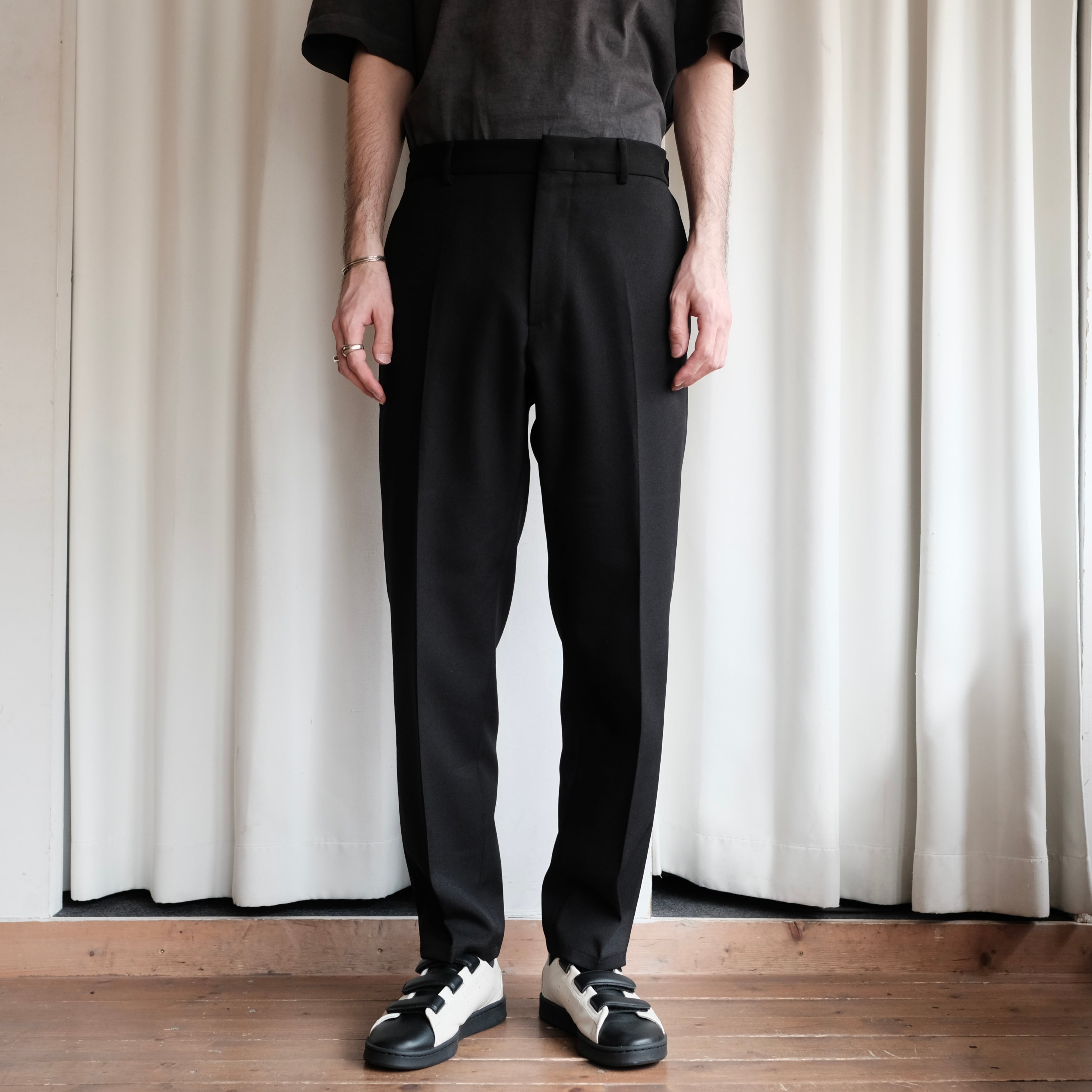 ラグジュアリーブランドに多い細すぎるテーパードシルエットではなく、腿周りはワイドパンツのようにゆったりしながらも、裾に向かって綺麗にテーパードするこのシルエットはルークメイヤーのデザイン以外には思い浮かびません。