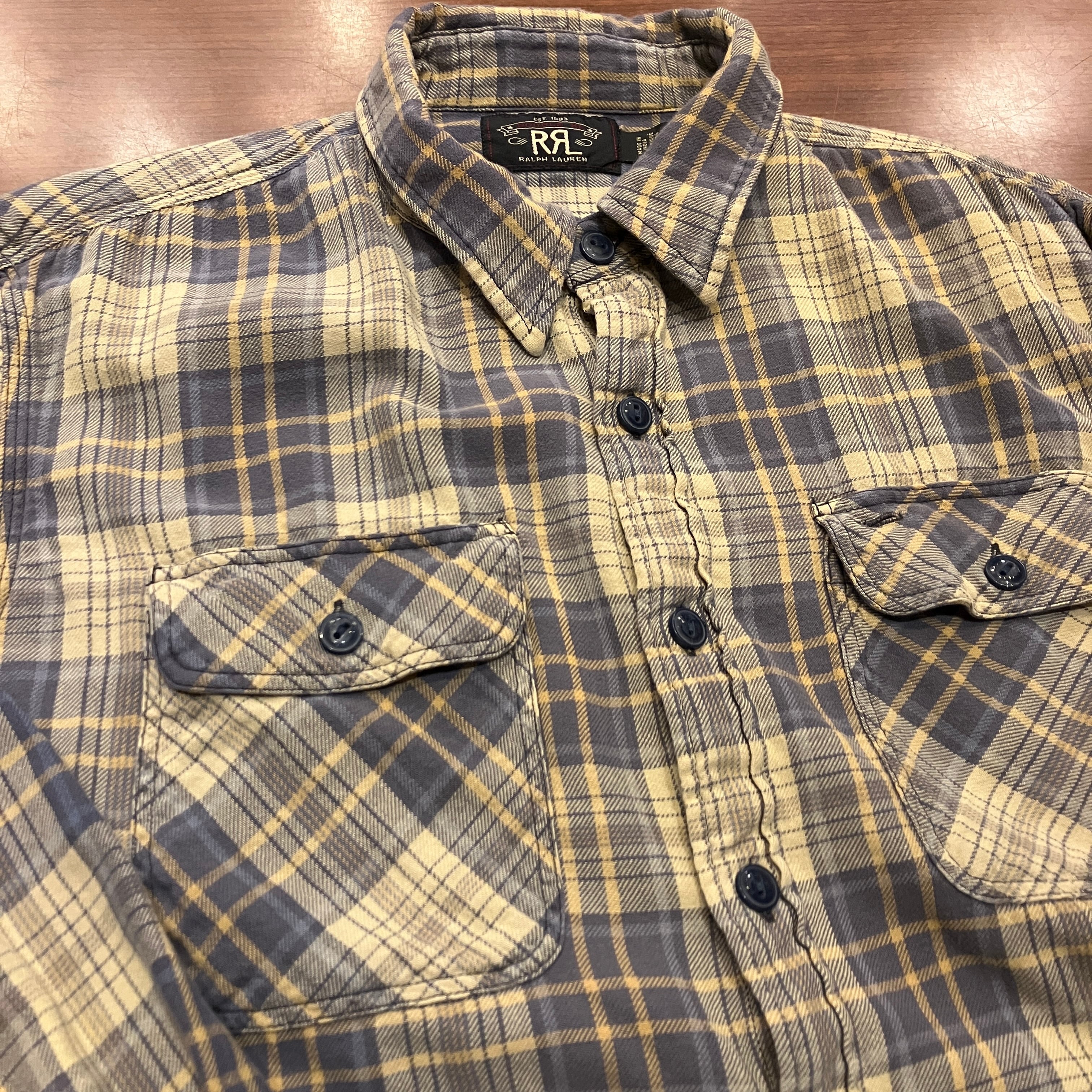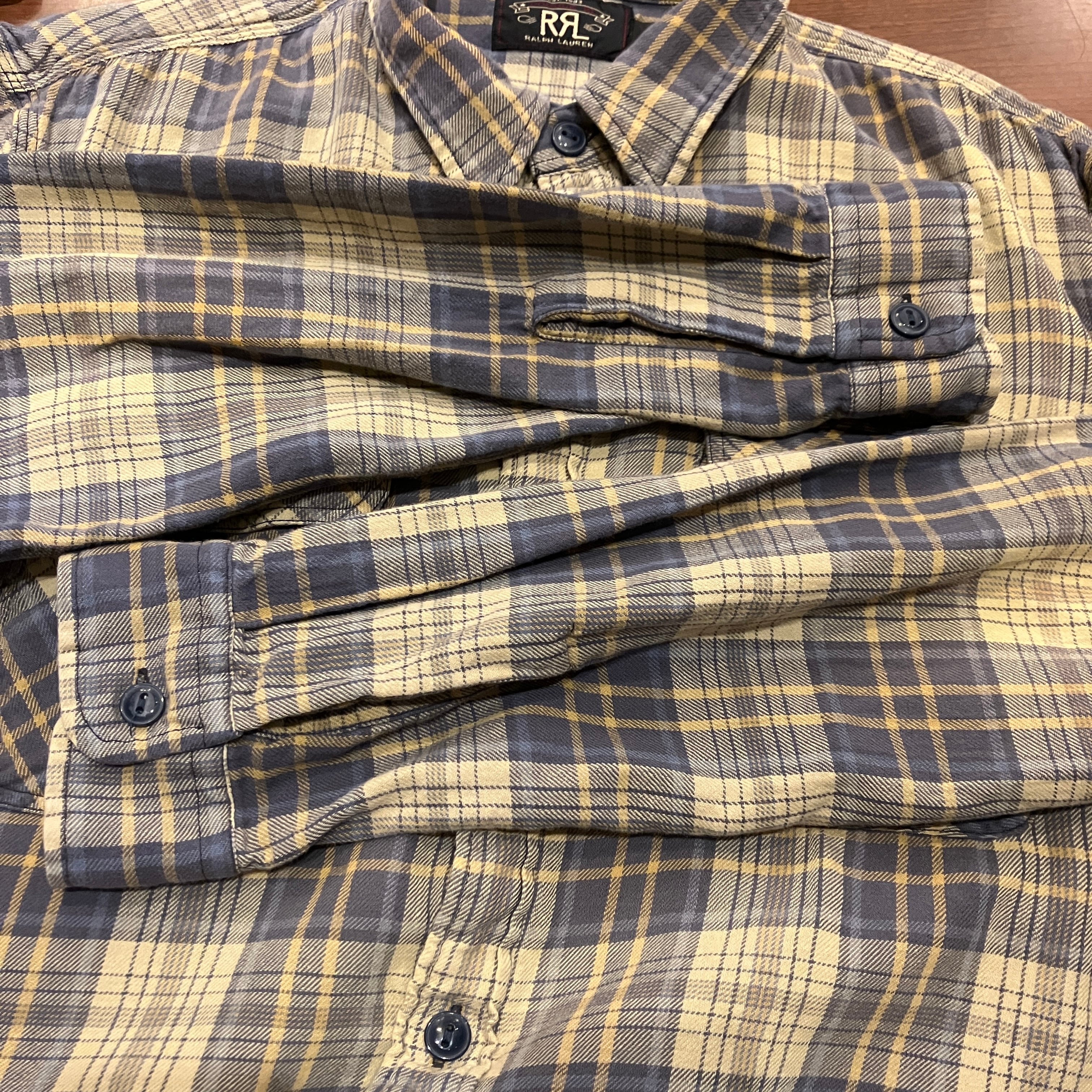 RRL FLANNEL CHECK SHIRT BEIGE/BLUE