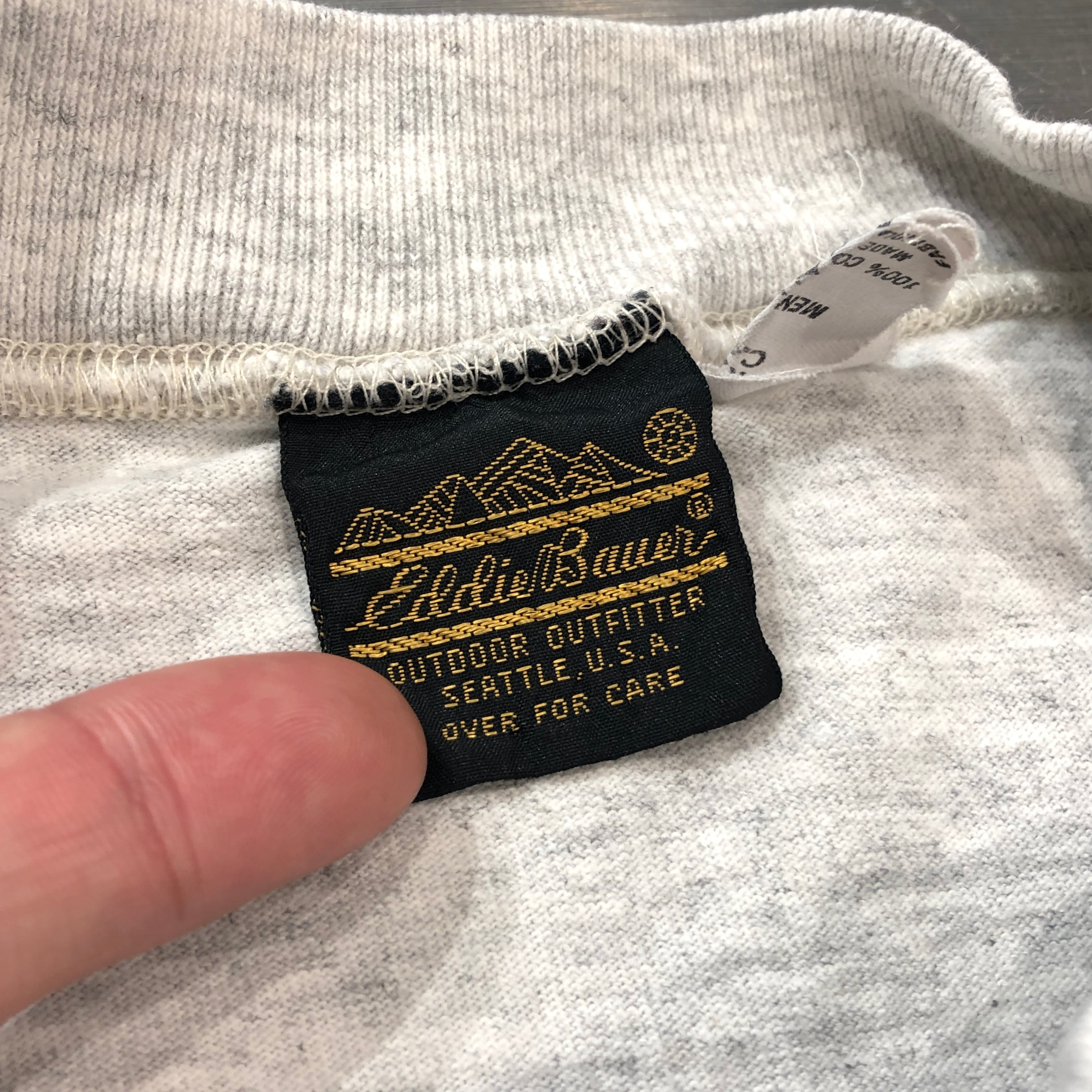 ⊕1980s EDDIE BAUER L/S POCKET TEE GRAY L USA 黒タグ
