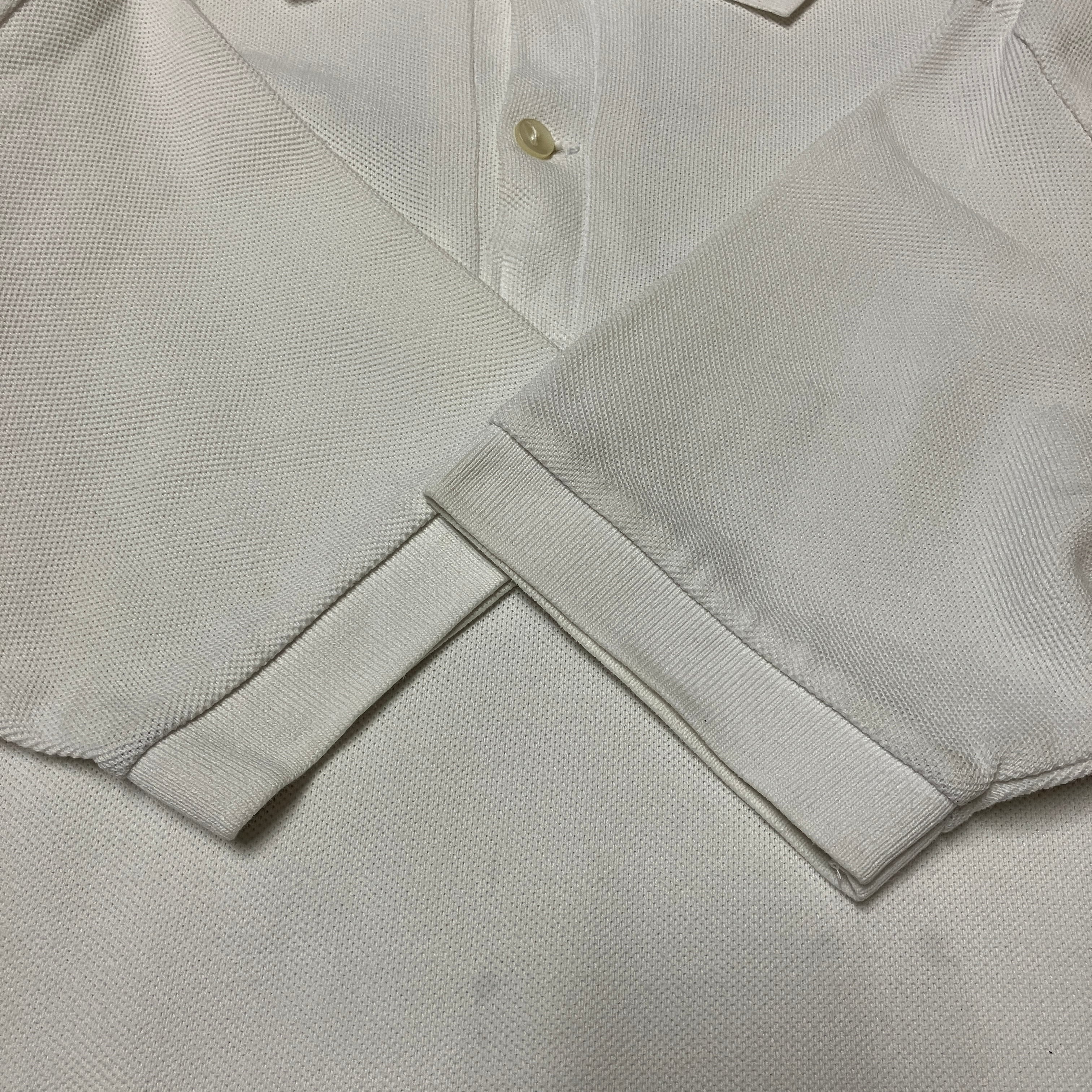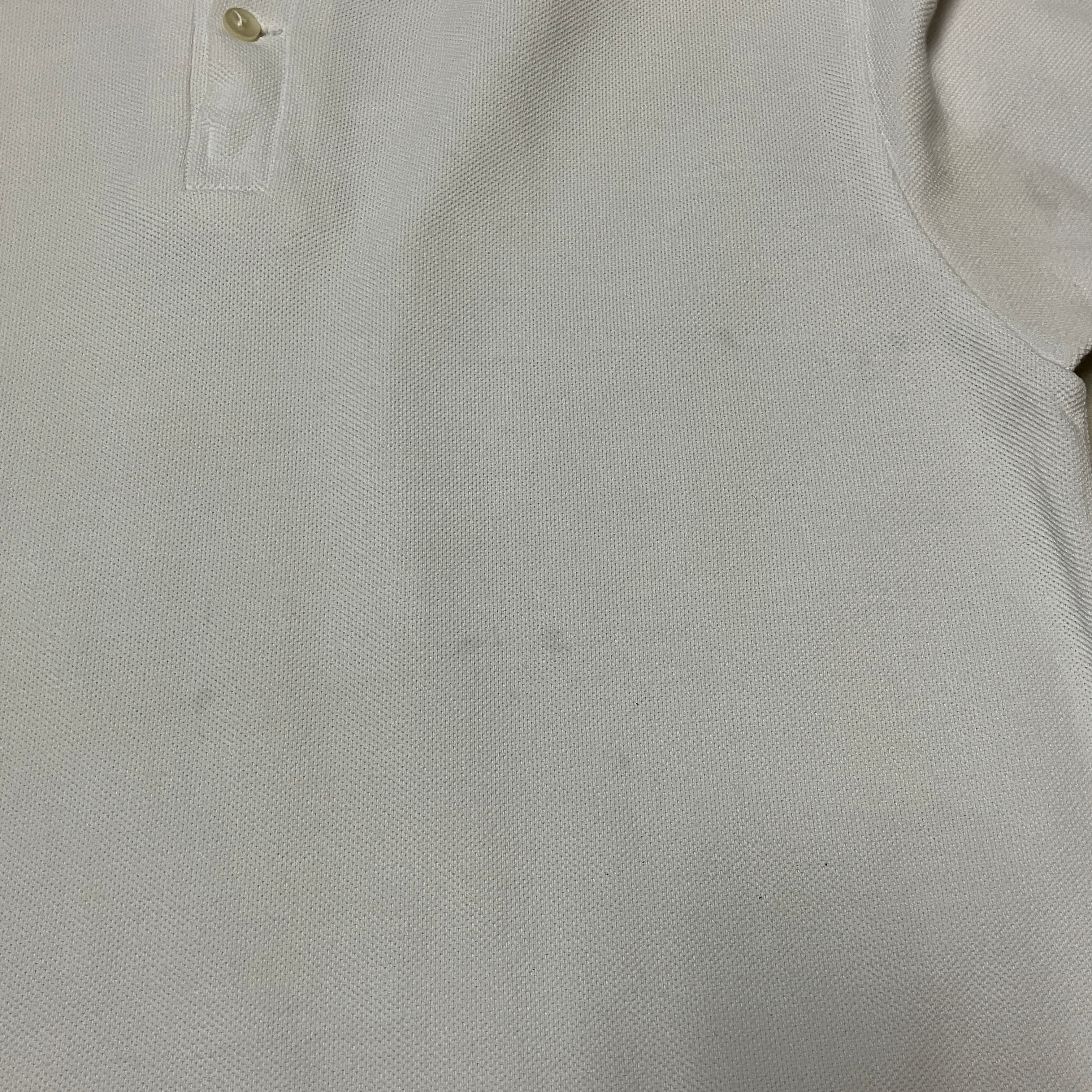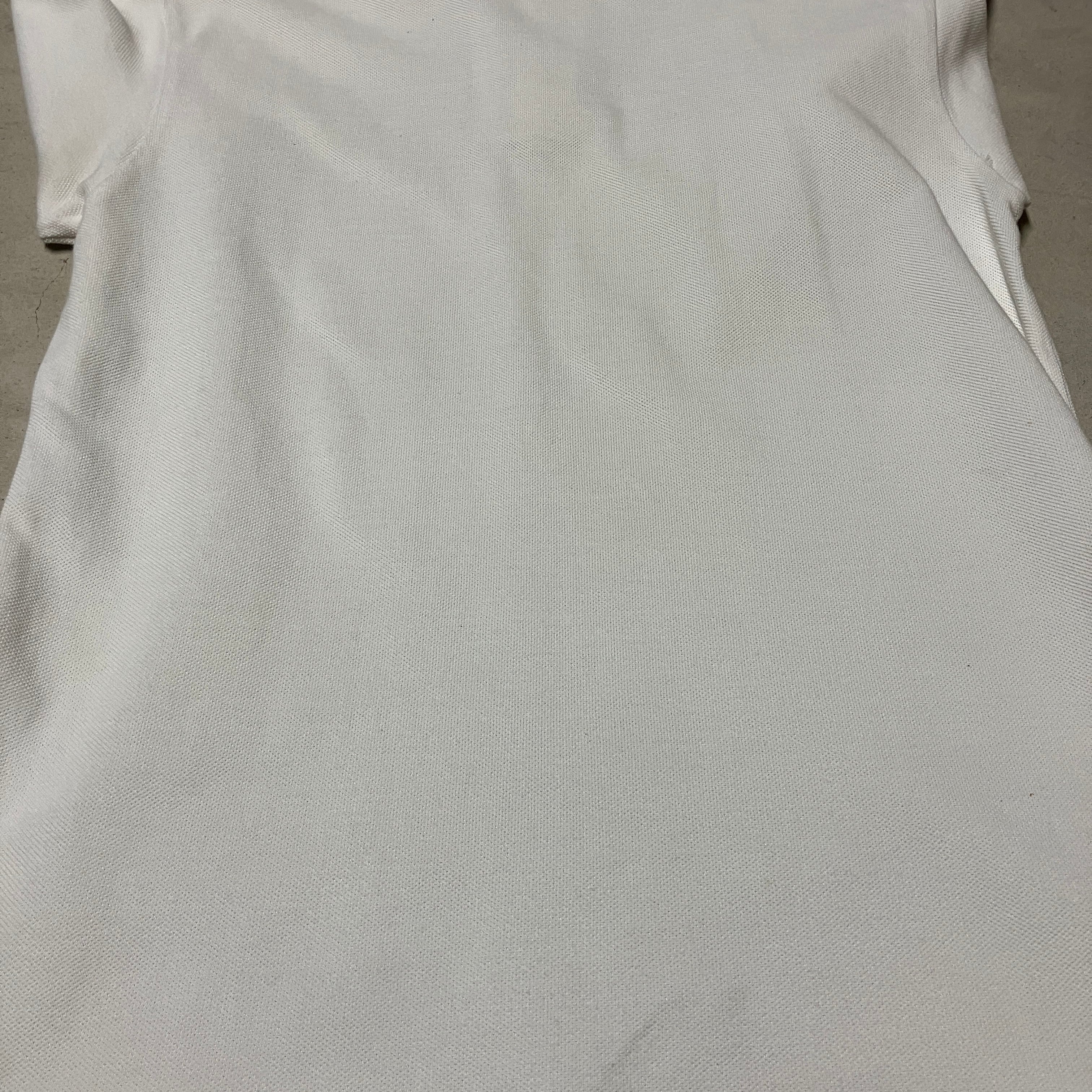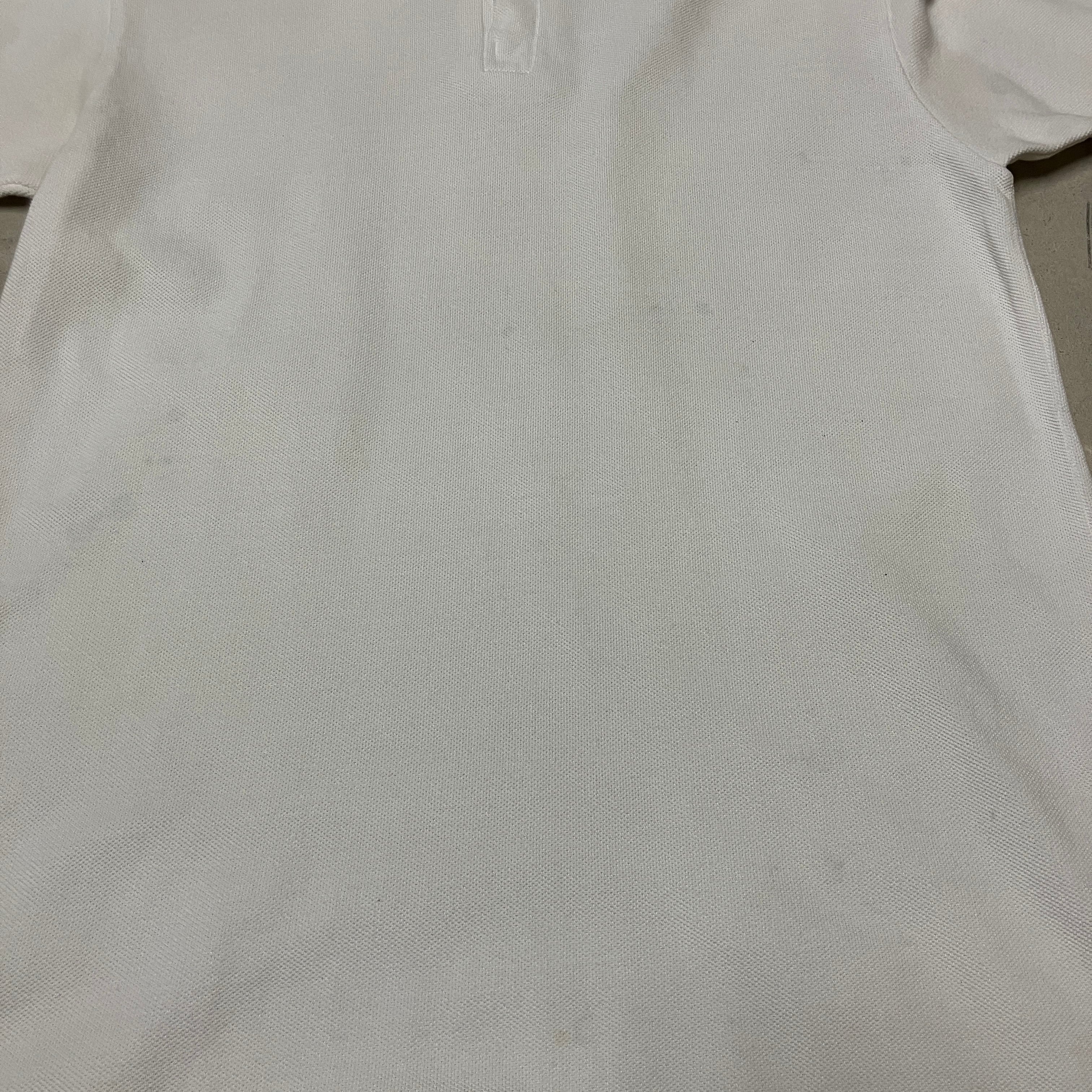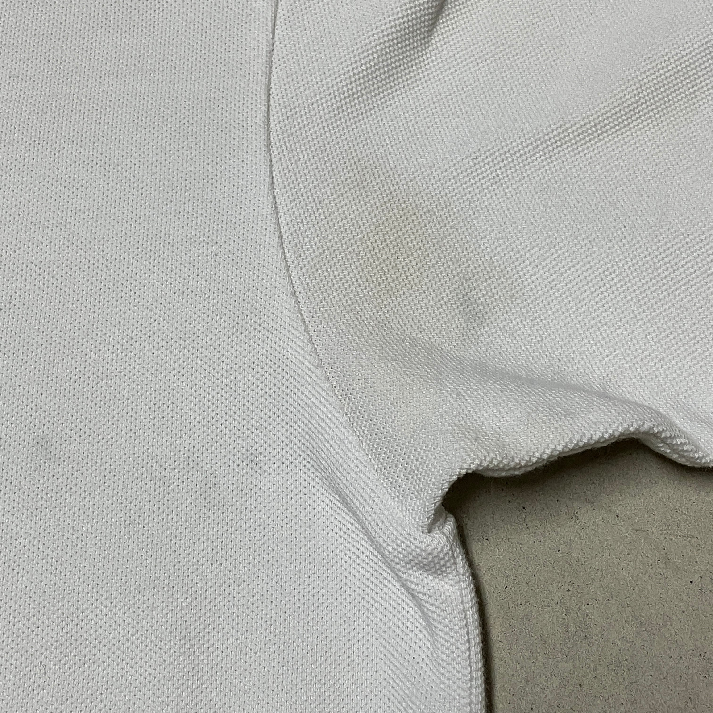 襟元や両脇下に黄ばみ、フロント下部に薄汚れがみられます。