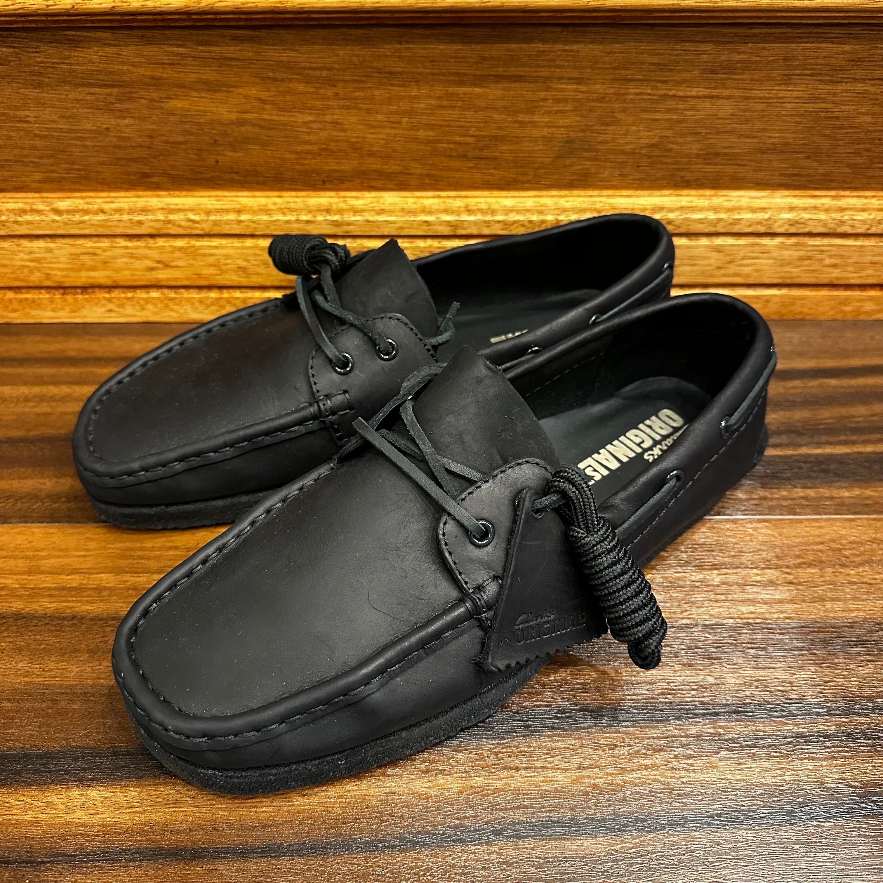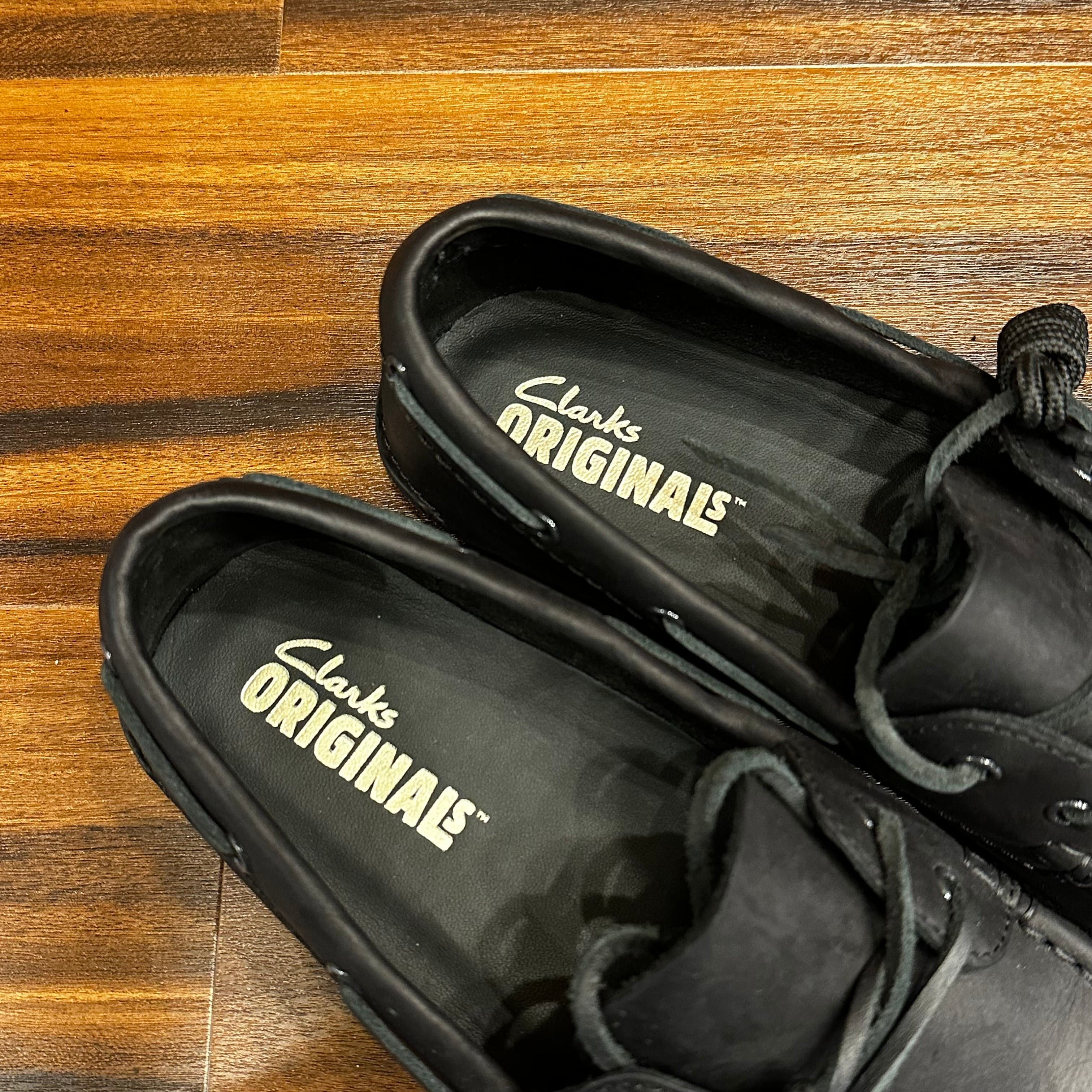 CLARKS GODNEY BOAT BLACK LEATHER UK 7 1/2