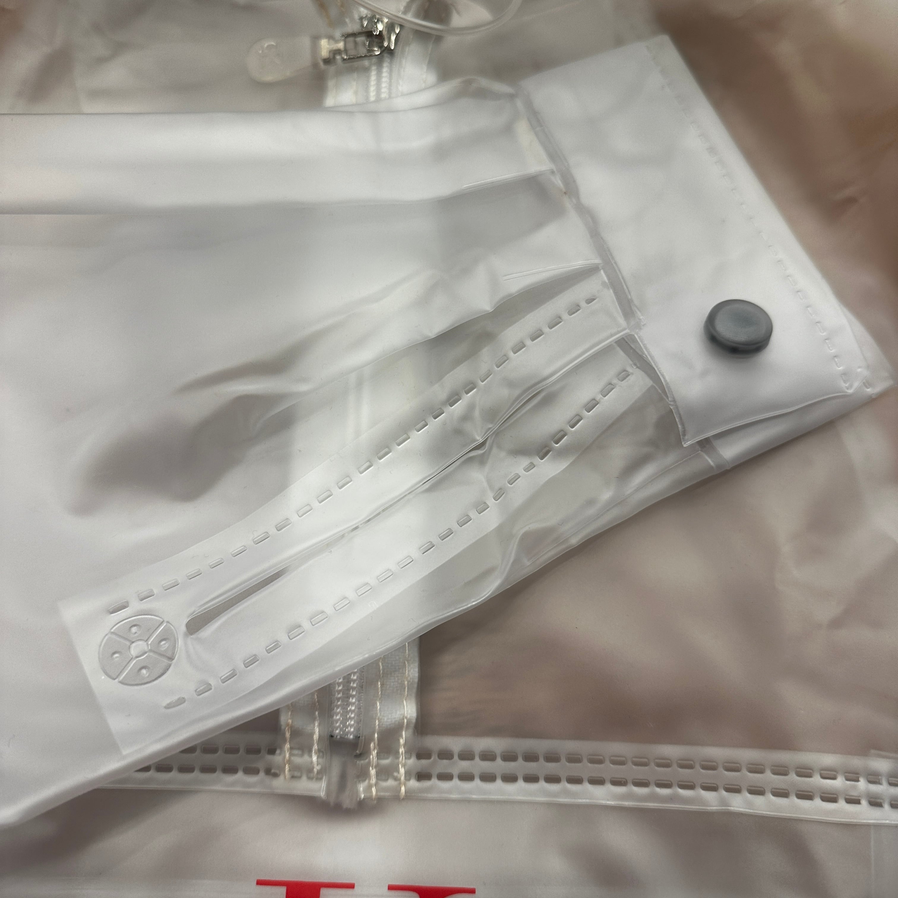 透明な素材(PVC)を使用したプルオーバーアノラック。雨の日にはもちろん、色物のレイヤードで様々なスタイリングが可能な一着。貴重なアーカイブピース。