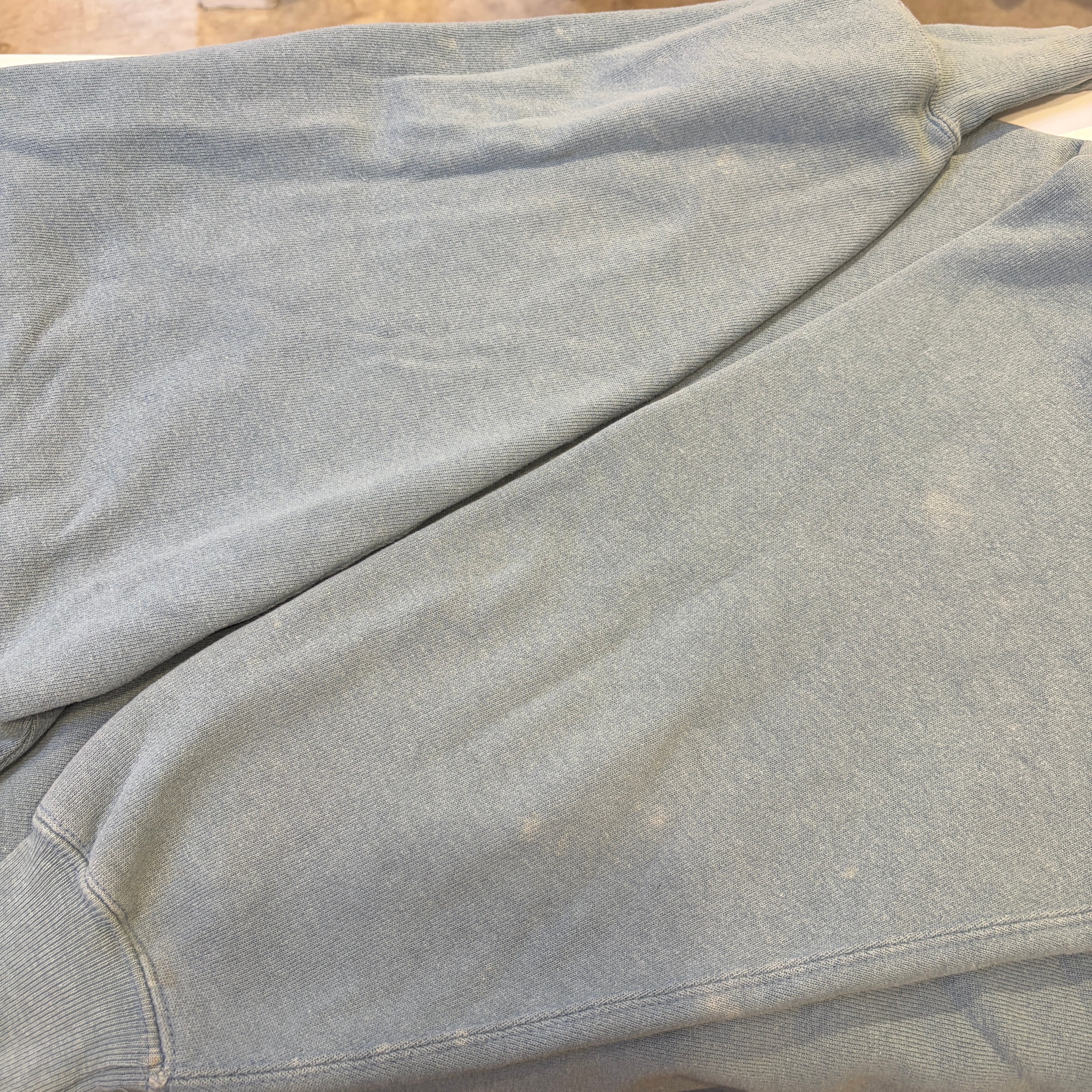 斑点状のブリーチ跡、褪色や一部細かなダメージ、スレ感などございますが問題なく着用可能な状態です。