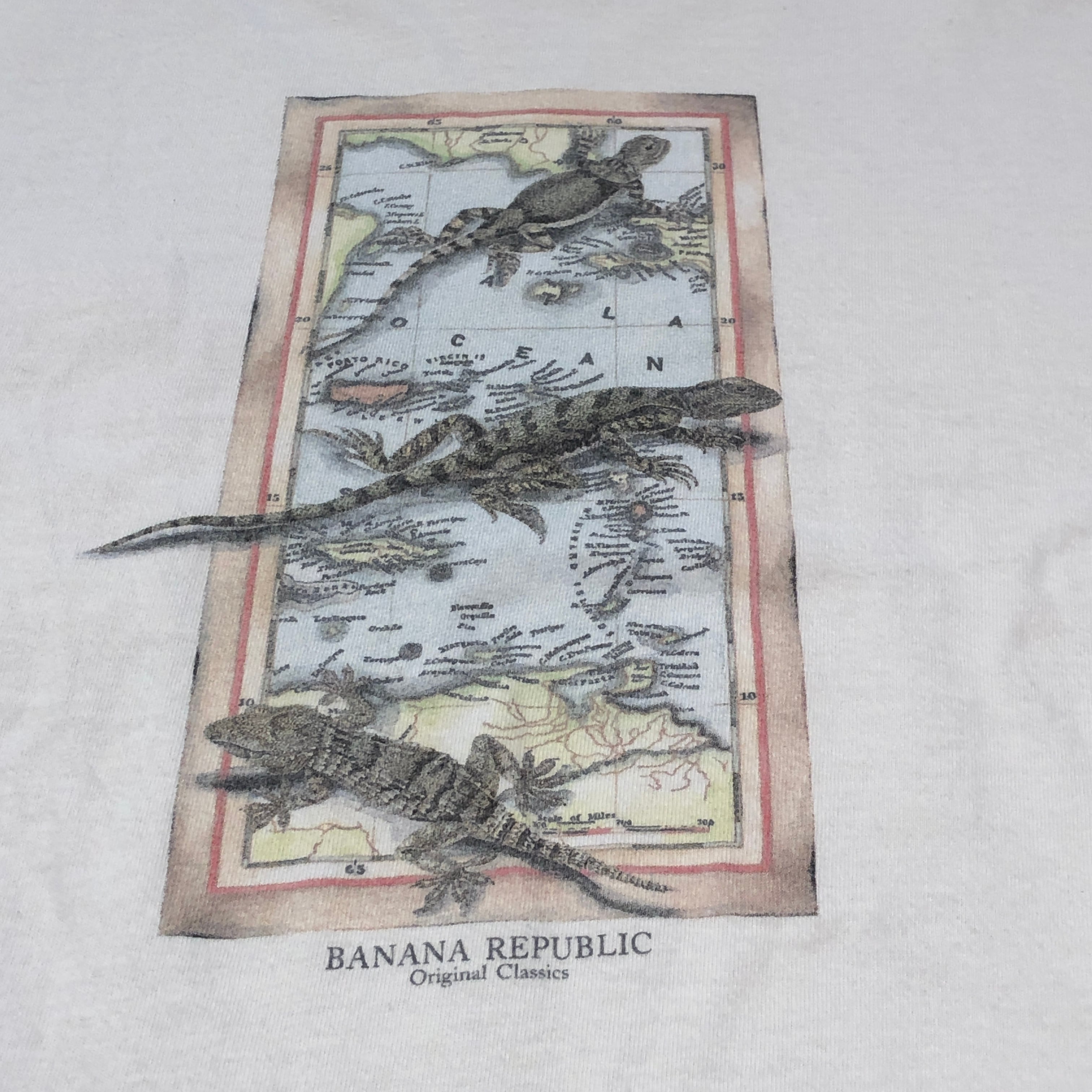 ⊕BANANA REPUBLIC POCKET T-SHIRT MAP LIZARD OLD MODEL