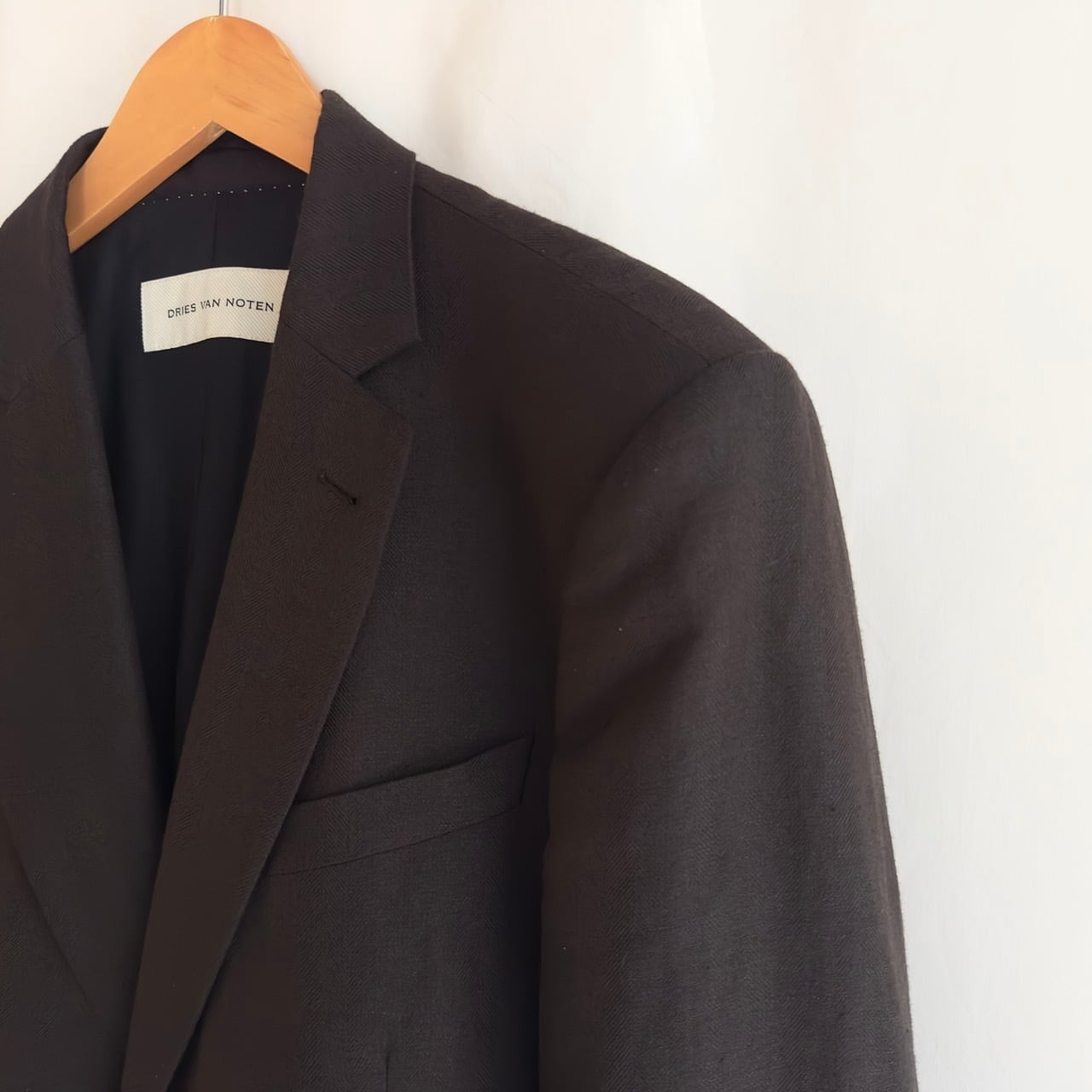 少しカーブしたラペルの形や程良く作り込まれた肩周りなど、ドリスヴァンノッテンではよく見られるディテールの当アイテム。