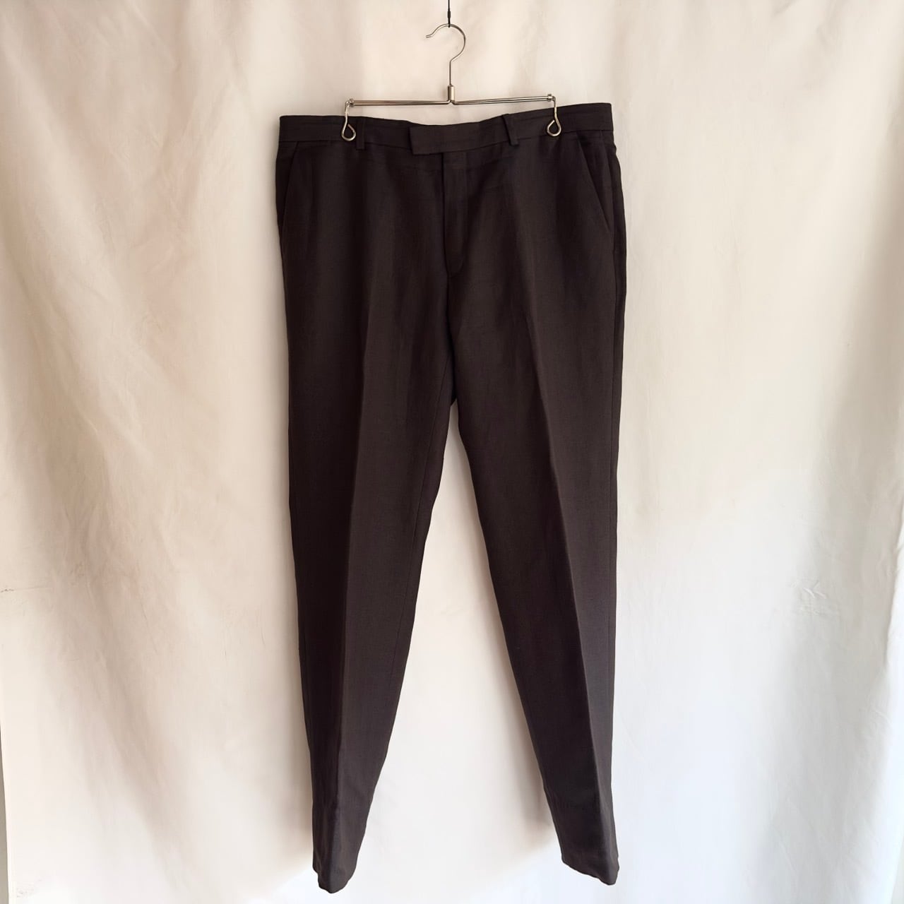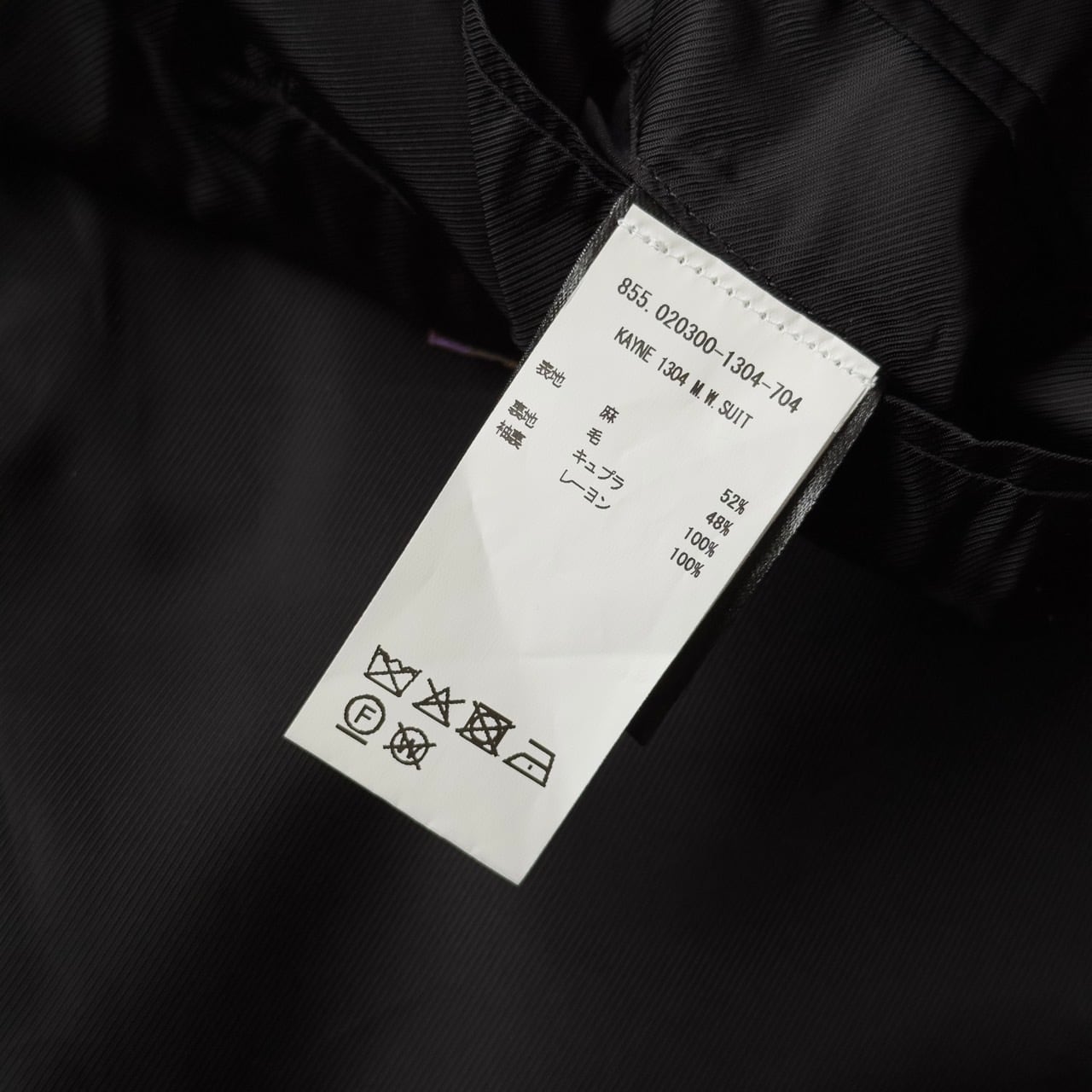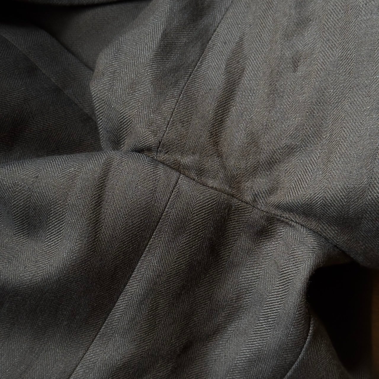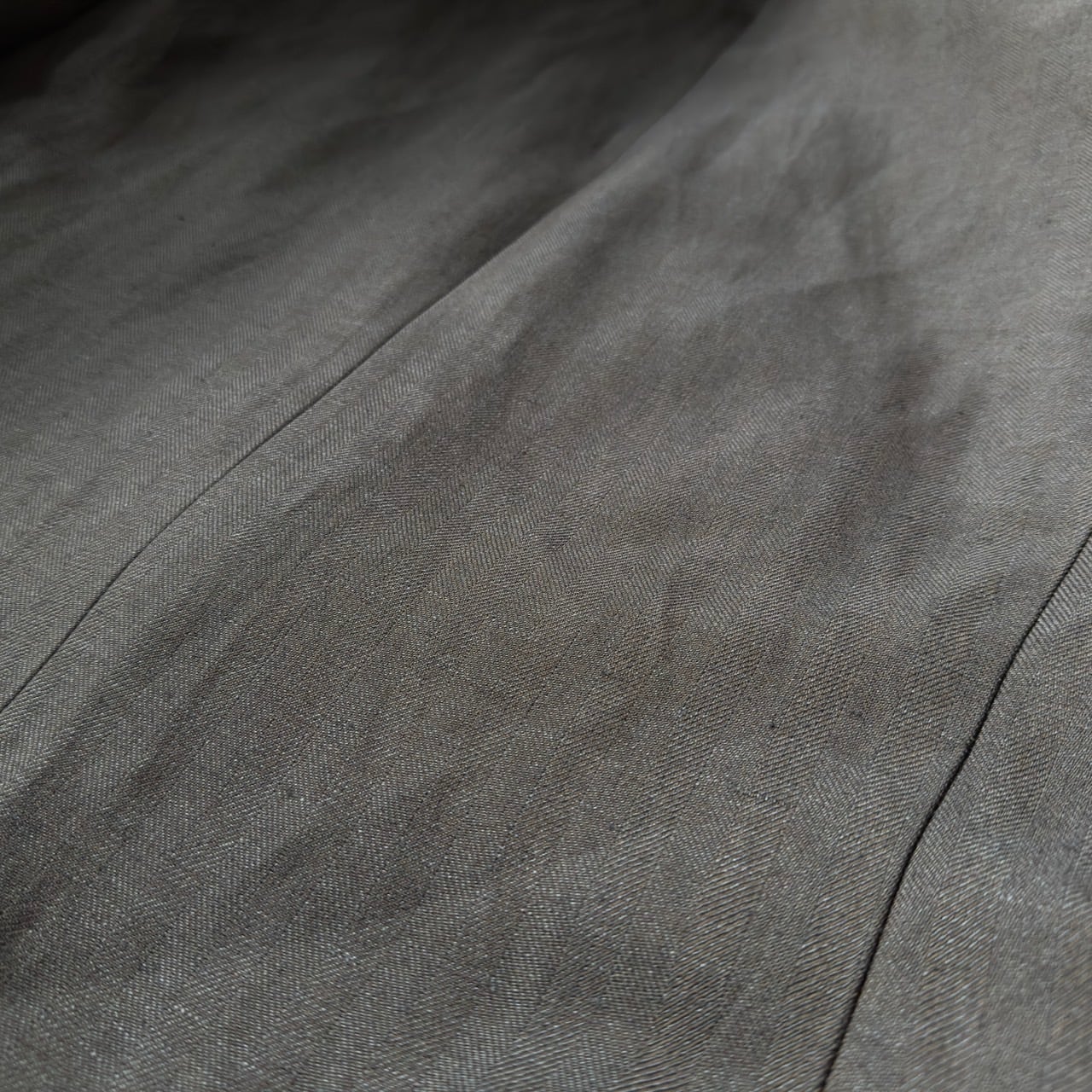 スコットランドの老舗生地メーカーであるラバット社の生地を用いており、リネン特有のシャリ感とウールのツヤのある滑らかな生地感が絶妙にマッチした上質で非常に良い雰囲気の個体。過去のコレクションでは生地メーカーを讃えるようなアイテムを作るなど、生地への拘りも強い当ブランド。