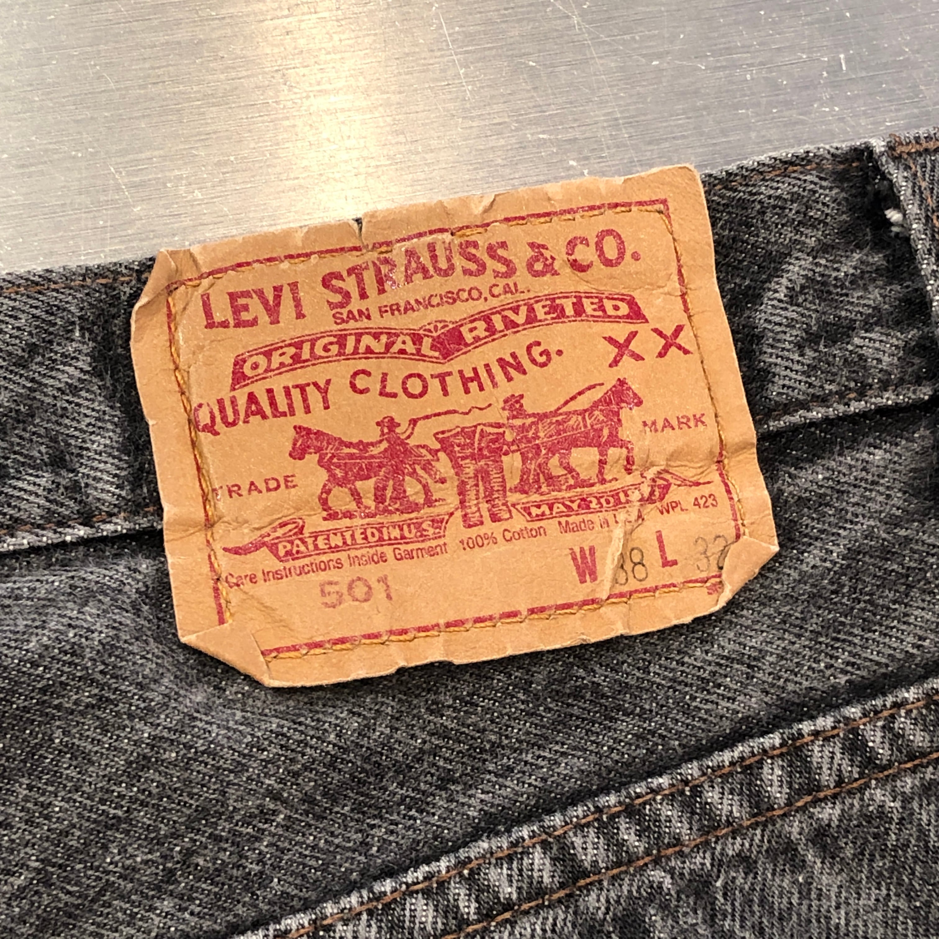 ⊕1990s 501 先染めBLACK W38 L25 USA