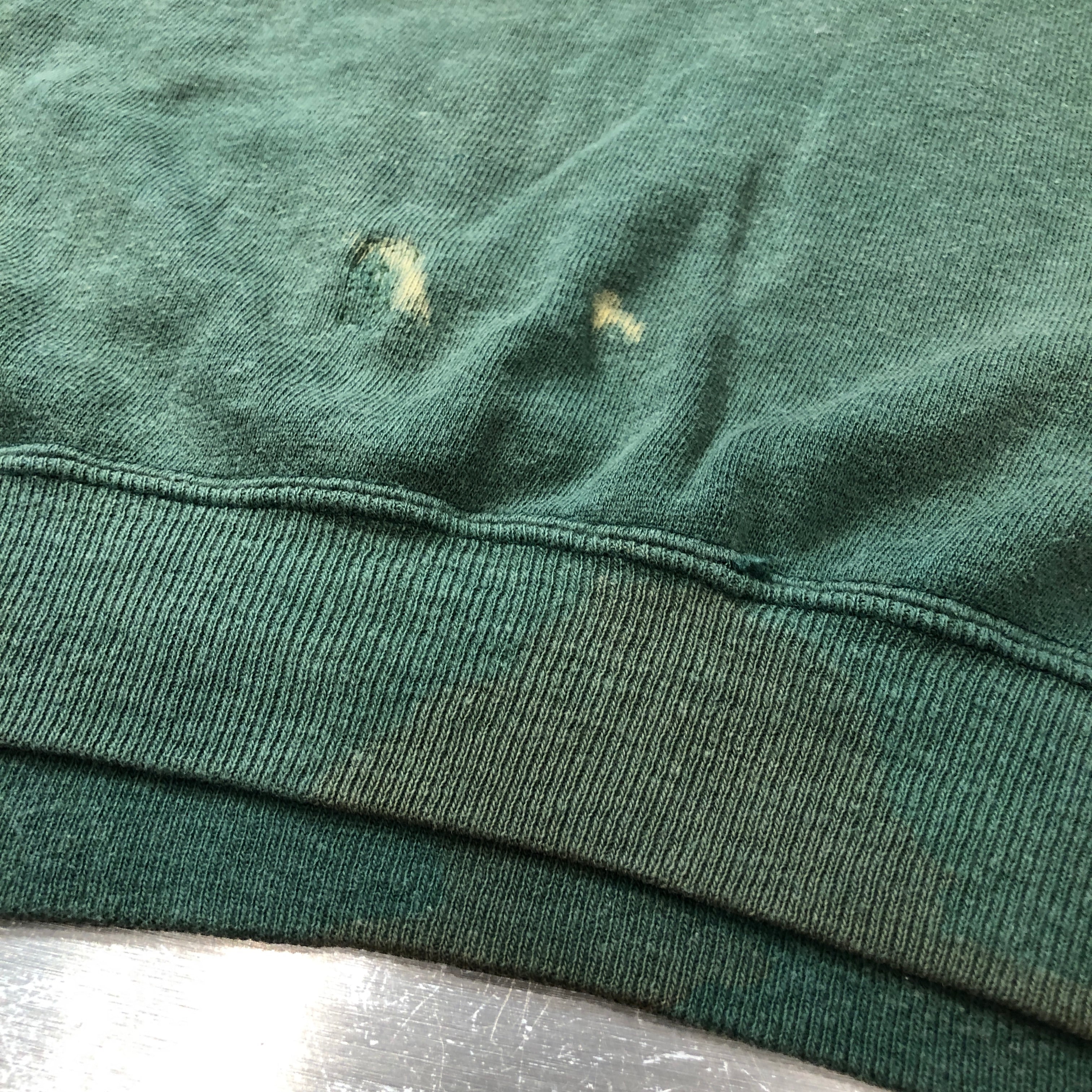 画像のように、全体的にサンフェード、裾に汚れ、ボディにダメージ、リペアがございます。