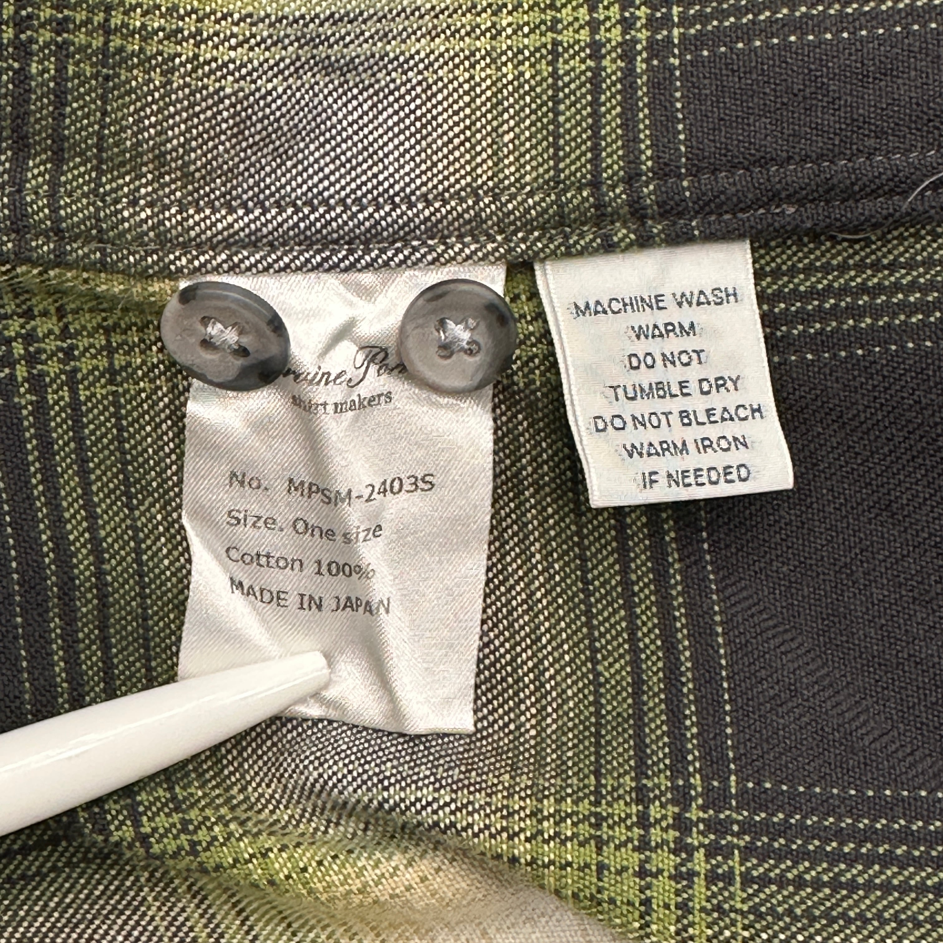ロングポイントの襟や石ボタンのようなデザインが一癖ある仕上がりになっています。
